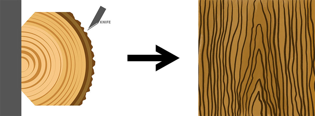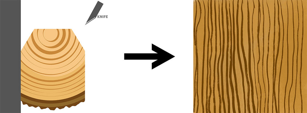 A wood grain pattern with curved lines that is split or sawn parallel to the growth rings.
