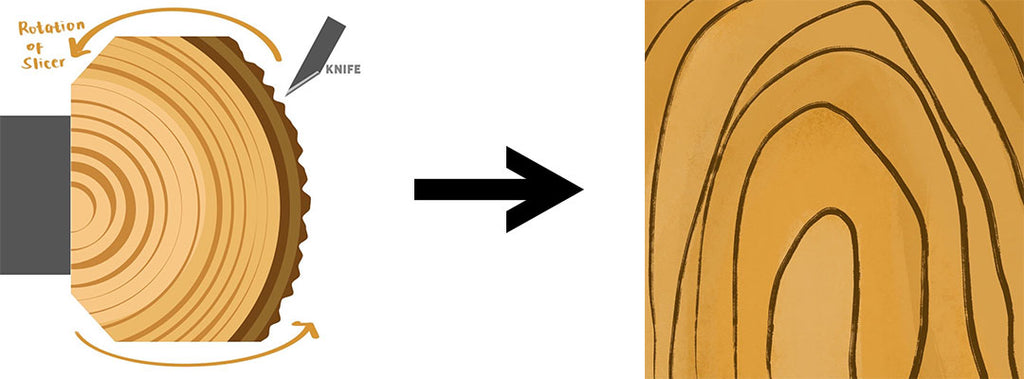 We manufacture our products using a unique processing method so that as many people as possible can enjoy the beautiful wood grains of rare trees.